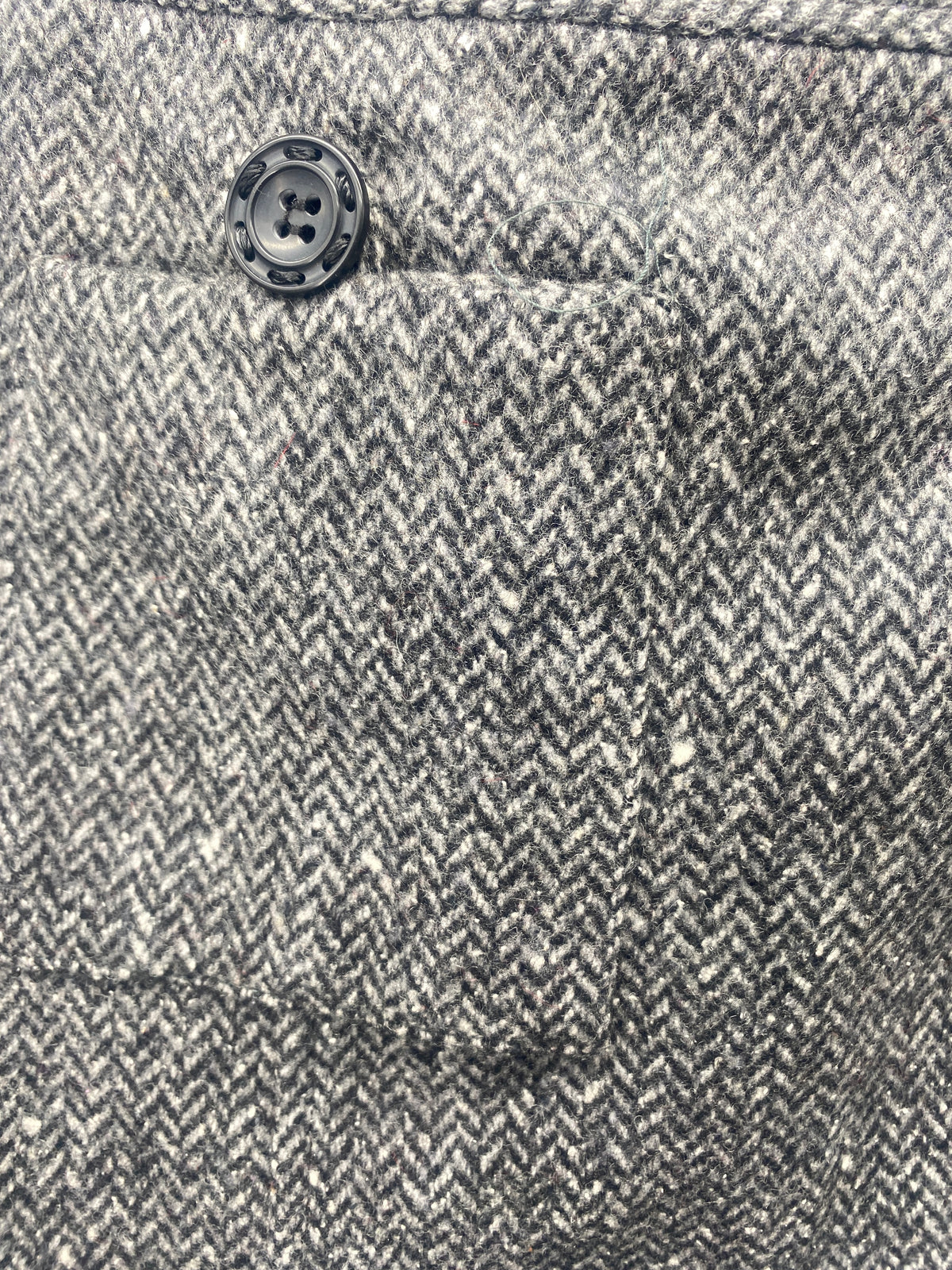 Jupe courte gris Chine en laine ouverture à boutons sur le côté