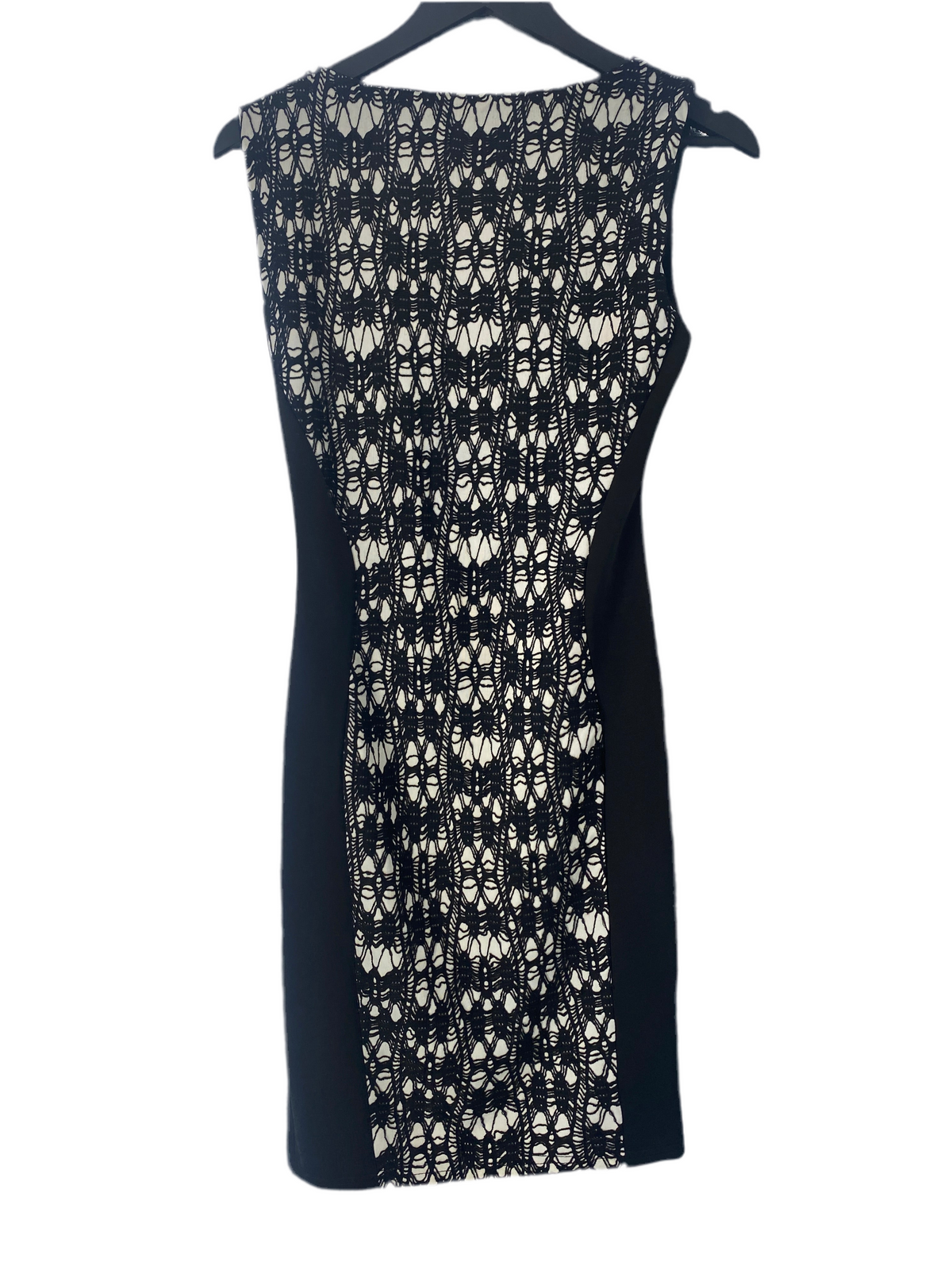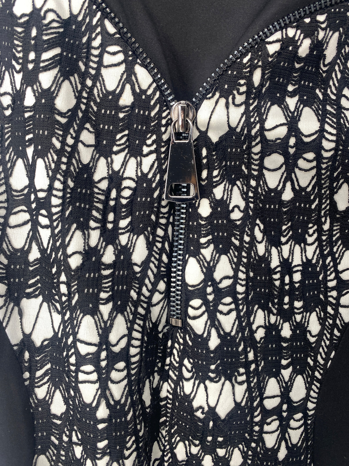 Robe noir et blanche en polyester dentelle sur le milieu de la robe