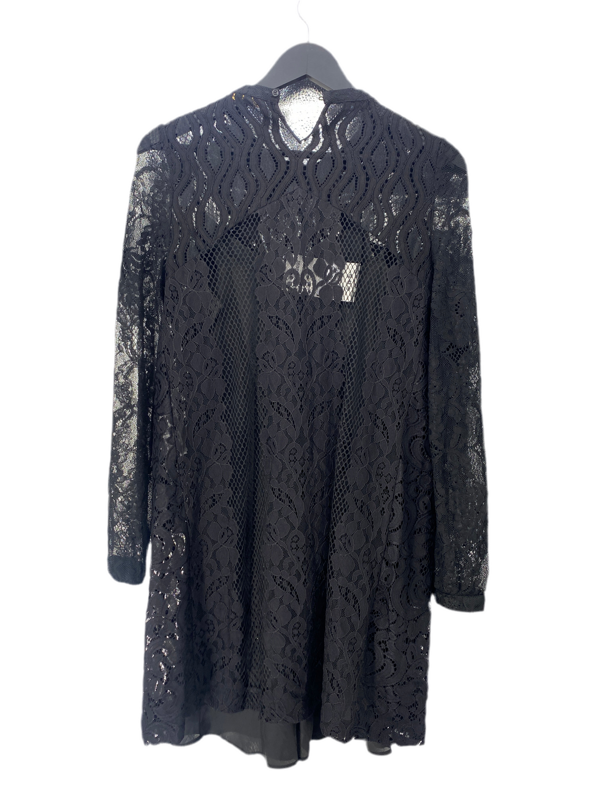 Robe à dentelle noire, petit fond à bretelles en dessous en polyamide