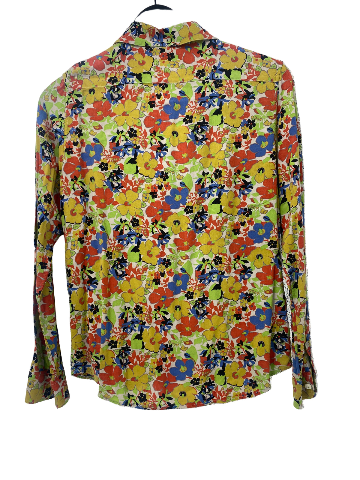 Chemise à fleurs vert orange bleu en viscose