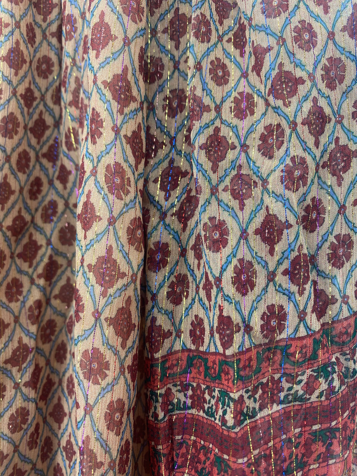 Haut tunique à fleurs bordeaux et doré en viscose