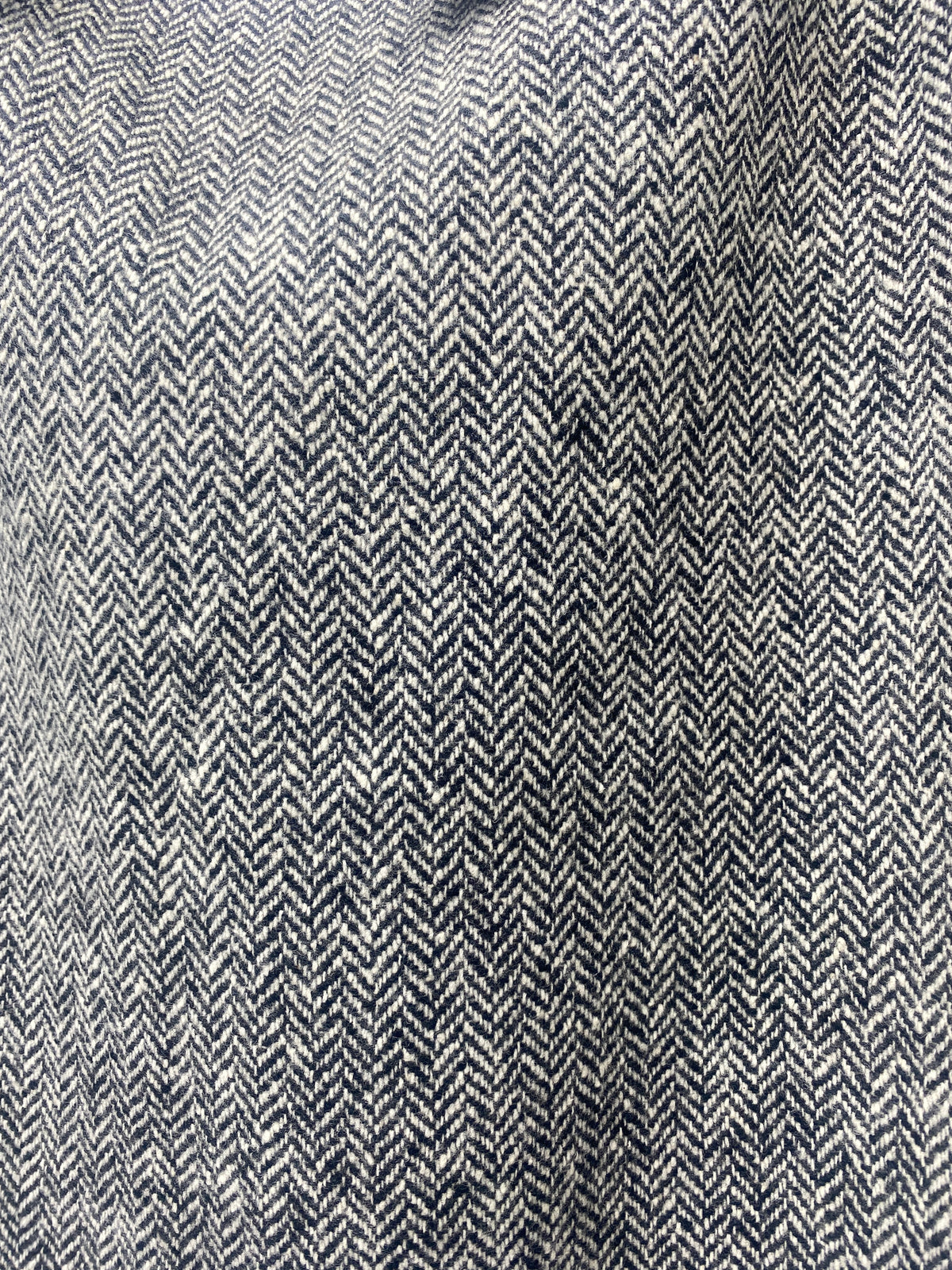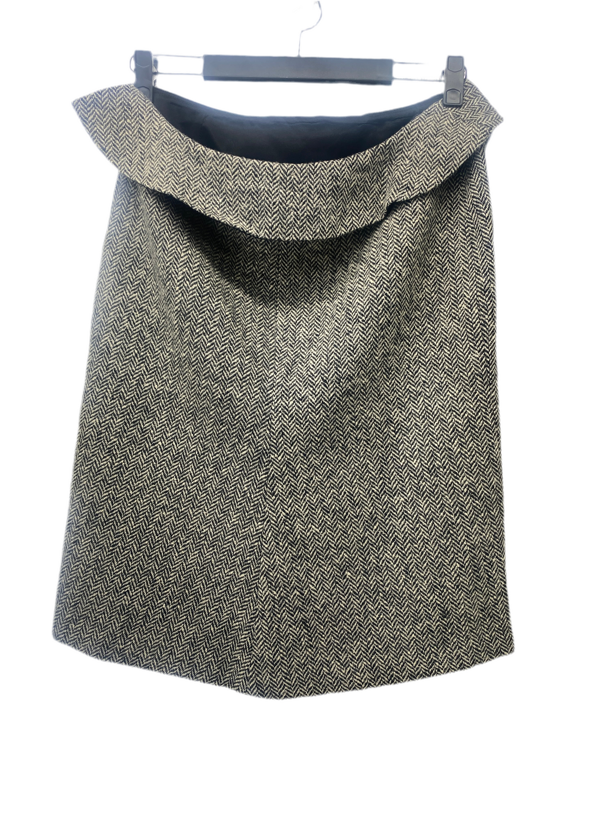 Jupe chevron beige et gris à volant au niveau de la taille en laine et soie