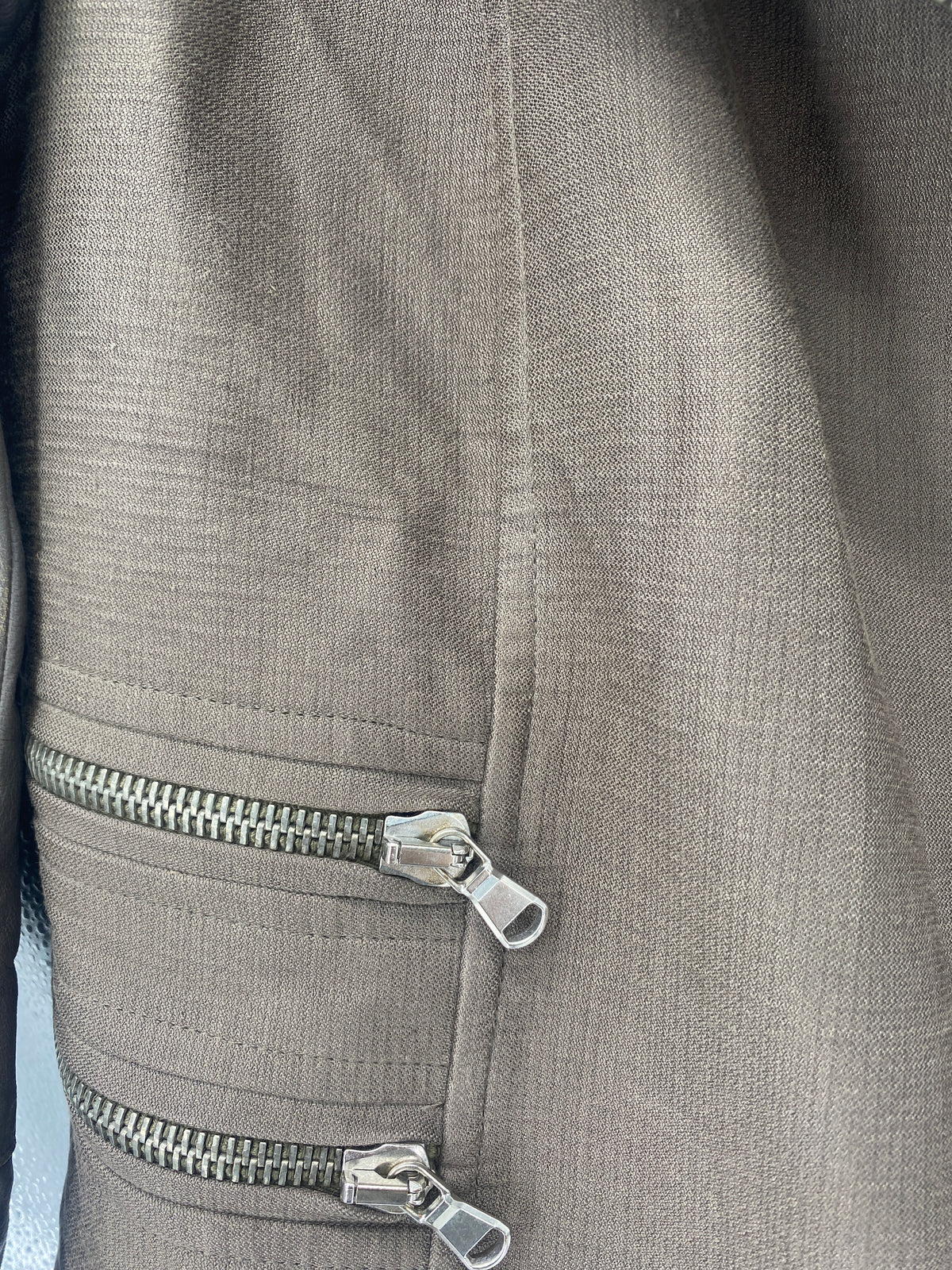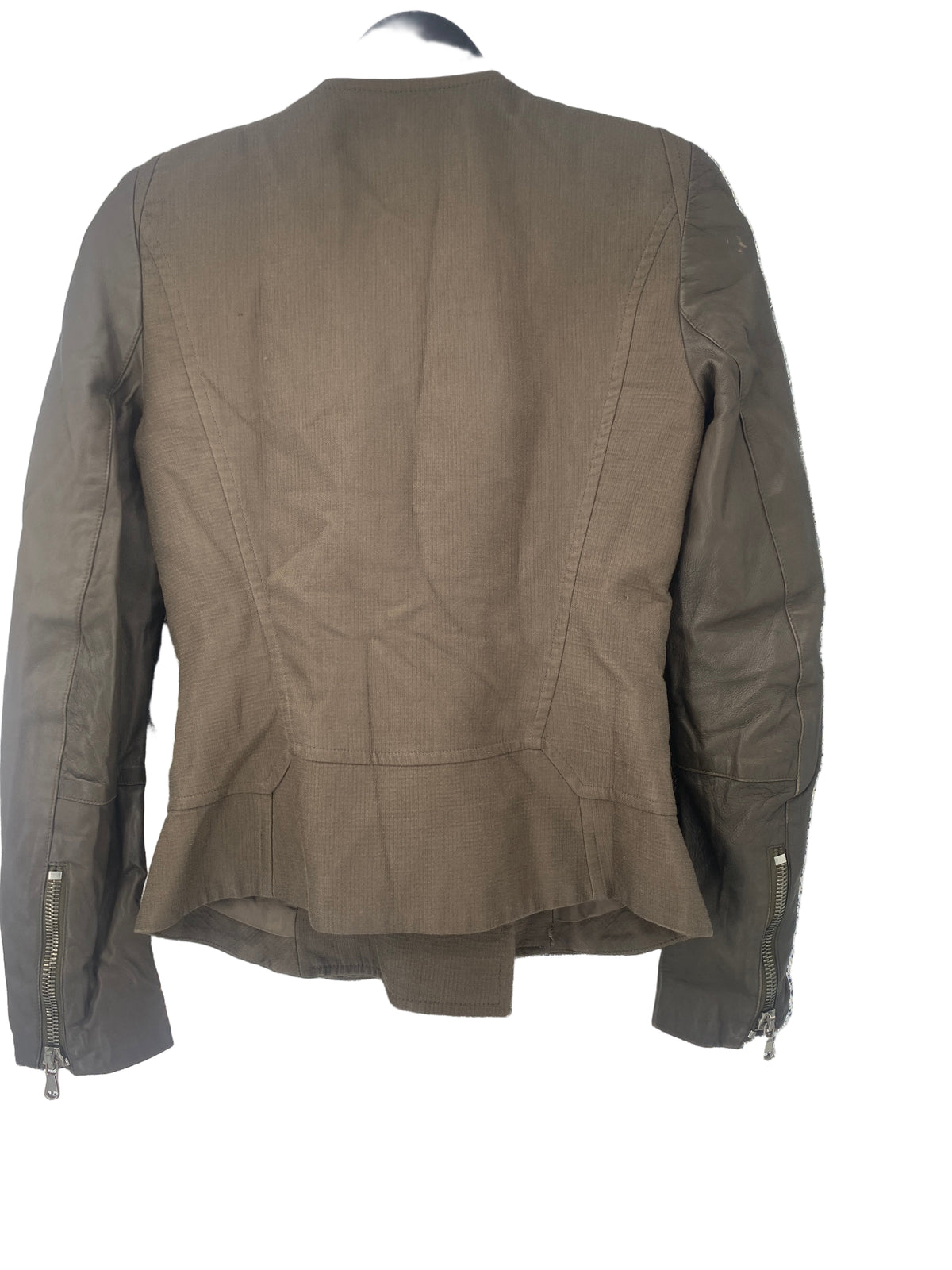 Veste taupe en coton et soie manches en cuir